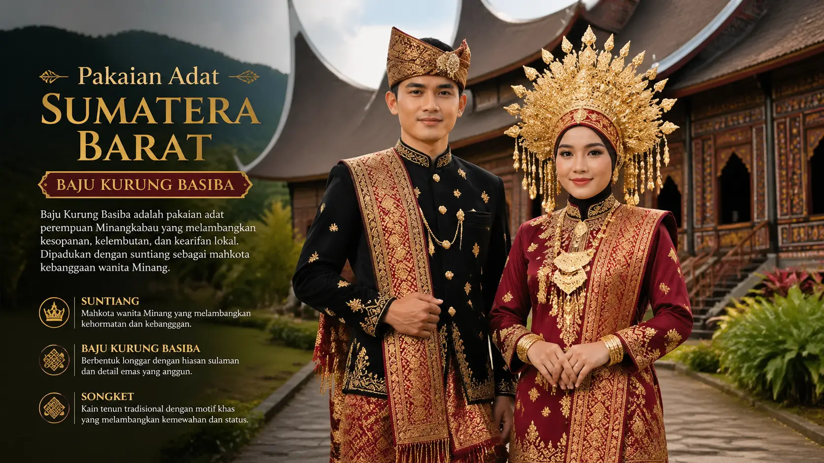 Pakaian adat Sumatera Barat Baju Kurung Basiba adalah warisan budaya Minangkabau yang sangat kaya makna, indah dalam tampilan, dan kuat dalam filosofi. Busana ini menampilkan ciri khas berupa potongan longgar, tertutup, anggun, serta adanya siba di bagian samping yang menjadi penanda utamanya. Dalam keseluruhan bentuknya, Baju Kurung Basiba bukan hanya busana tradisional perempuan, tetapi lambang kehormatan, kesopanan, dan kemuliaan perempuan Minangkabau.